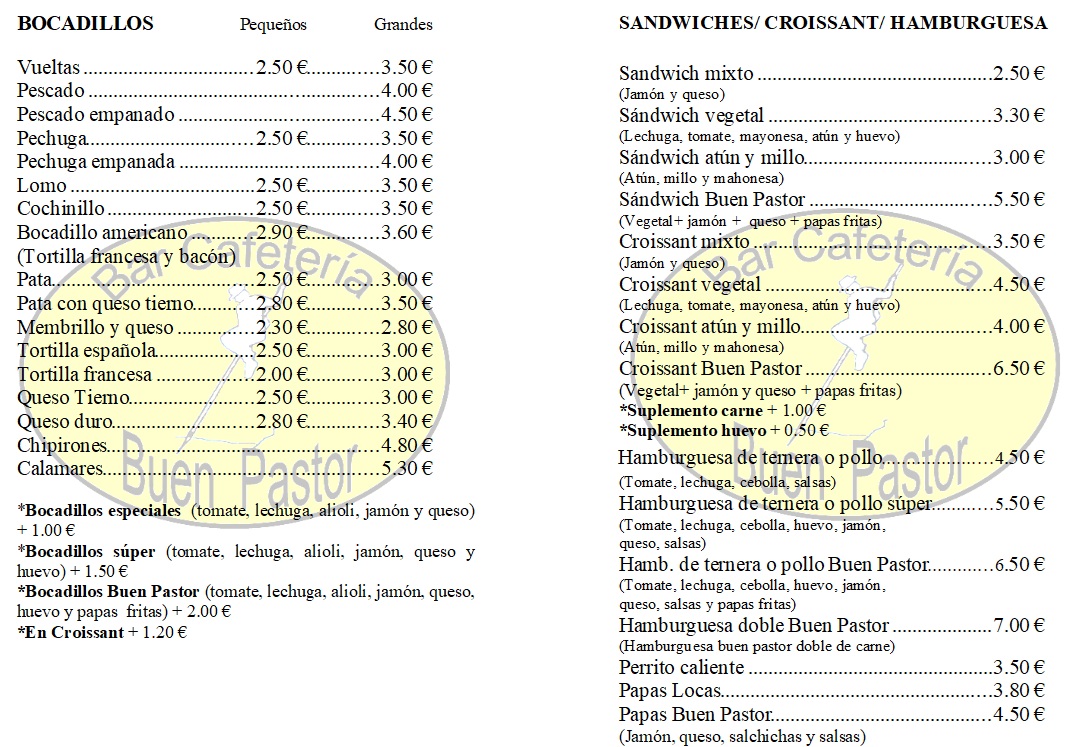 BOCADILLOS, SANDWICHES, CROISSANT Y HAMBURGUESAS