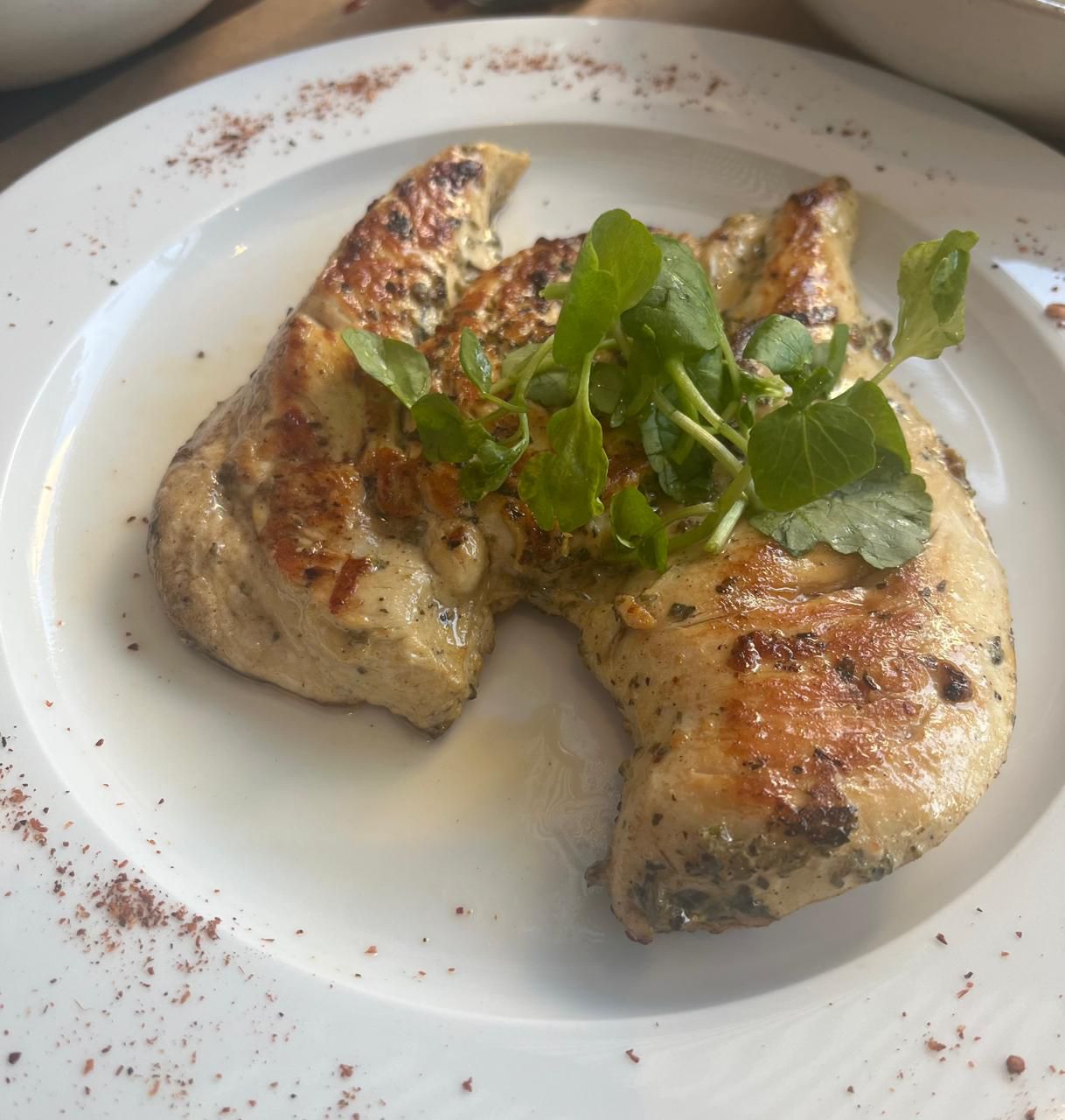 Suprema de pollo marinada (mostaza y orégano) en corte mariposa, que permite una cocción pareja y rápida a la plancha, manteniendo la jugosidad interior y logrando un exterior levemente dorado. Carne blanca, suave y magra, de sabor limpio y textura tierna, ideal para una opción liviana pero llena de sabor.