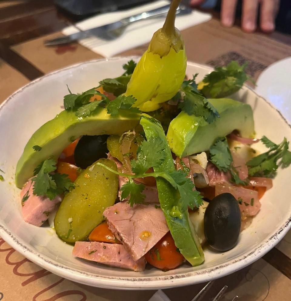 Clásica pichanga chilena servida en formato para compartir. Una sabrosa mezcla de encurtidos, arrollado, pernil quesos, aceitunas y otros acompañamientos típicos, ideal para abrir el apetito o disfrutar con una buena conversación.
