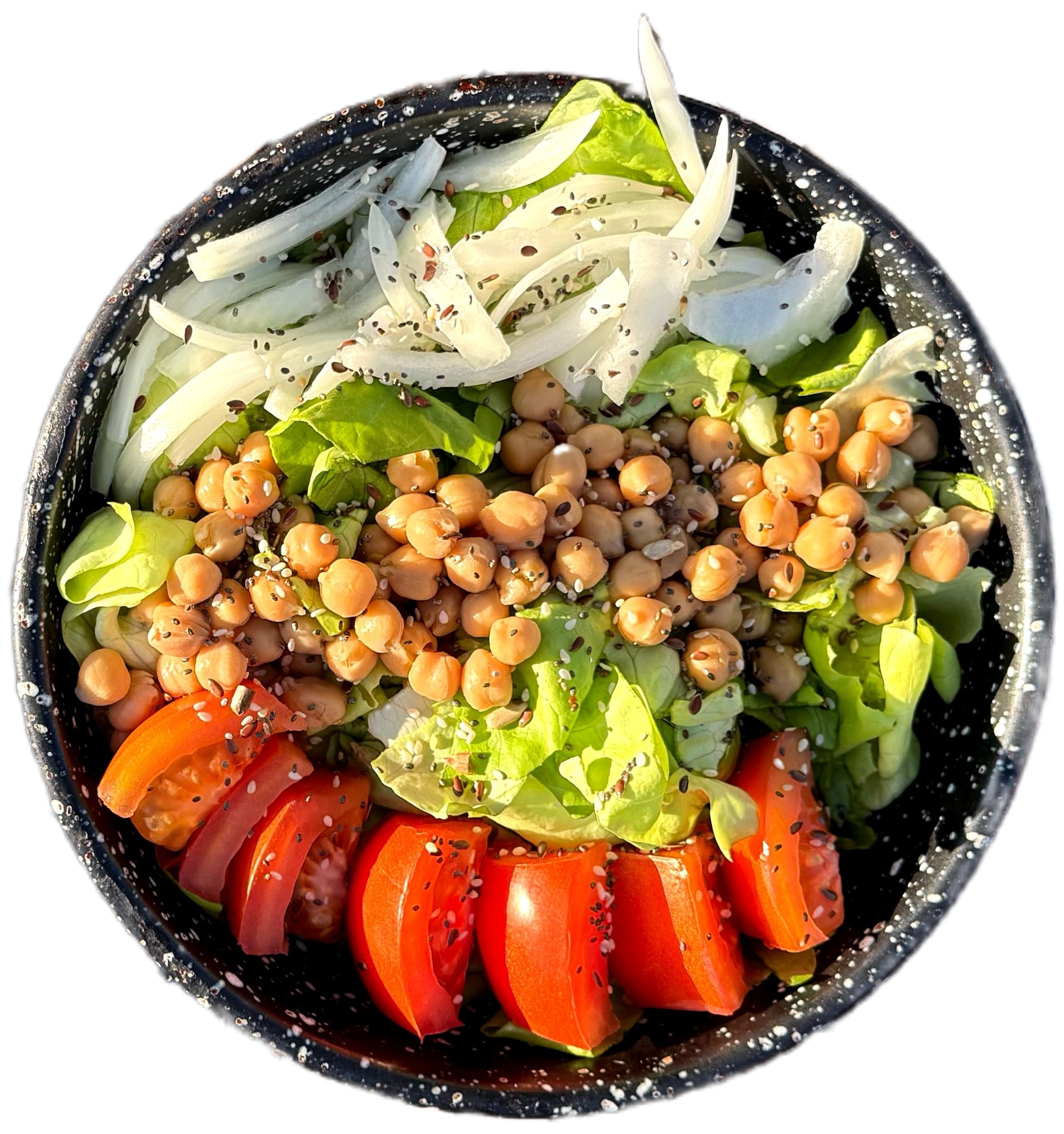 Tomate fresco, lechuga, cebolla, garbanzos y semillas tostadas