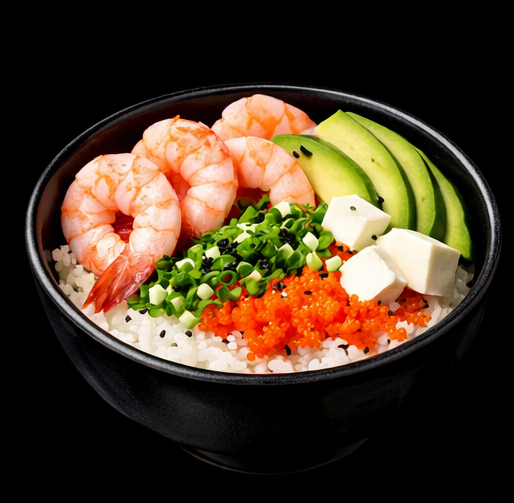 Camarón, queso crema, palta, masago, cebollín y sésamo.