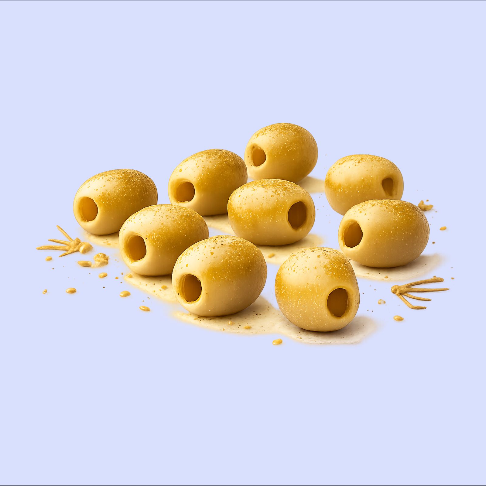 Olivas seleccionadas de alta calidad, jugosas y de sabor suave y delicado, que destacan por su frescura y autenticidad mediterránea.