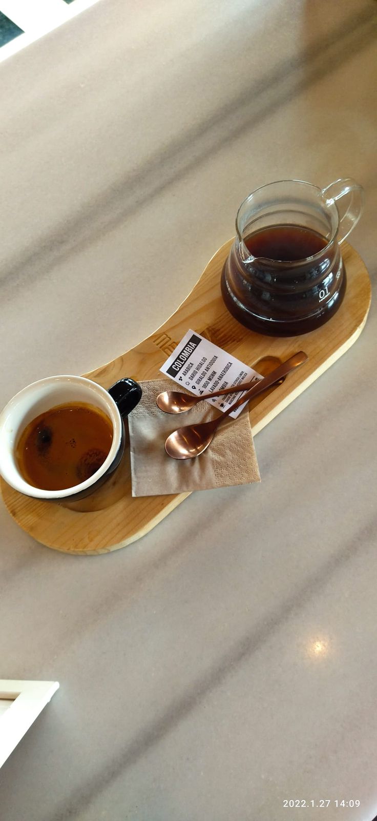 Около 100 мл фильтрованного кофе и двойной эспрессо (2 чашки. Информация на столе)